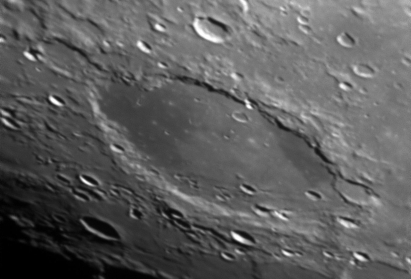 A crater Equipment used Telescope: Tal200K F32 6400mmCamera: G2 16200 MKIIMount:: EQ6 Pro Processing notes... Sharpcap, AutoStakkert Catalogued Items Dates 22-May-2020 FullDescription Schickard Category Lunar